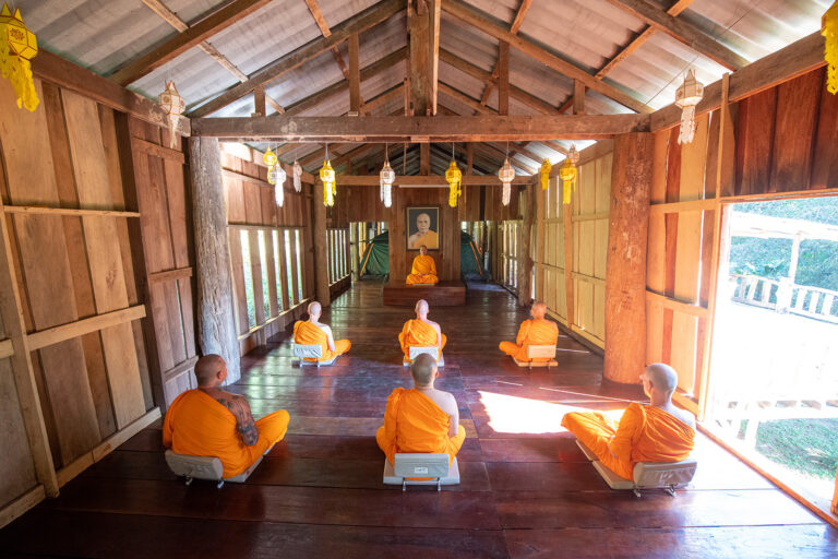Meditation is the heart of monkhood. Prescribed by the Buddha as the main practice, meditation purifies and quiets the mind, and deepens one’s wisdom. As a fundamental pillar, it will be the main focus of the program. We practice the Sati & Sabai method taught by most Venerable Luang Bu Wat Paknam, a method with emphasis on placing one’s attention at the center of the body while maintaining the proper balance of relaxation and concentration.